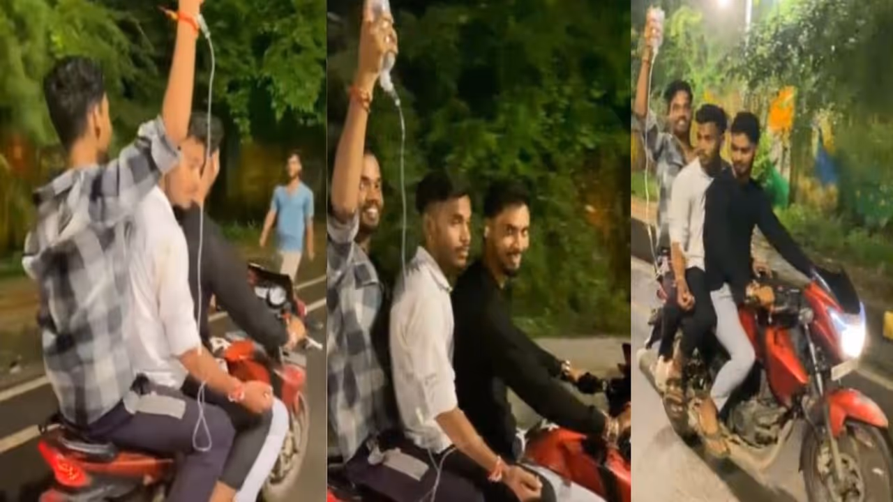 Gwalior Viral Video: ग्वालियर से एक चौंकाने वाला वीडियो सोशल मीडिया पर धूम मचा रहा है। इस वायरल वीडियो में एक बीमार मरीज को अस्पताल से आईवी ड्रिप के साथ बाइक की सवारी पर ले जाया जा रहा है। यह घटना झांसी रोड थाना क्षेत्र के नाका चंद्रवदनी इलाके की बताई जा रही है। सड़क पर बाइक पर बैठा यह मरीज और उसके साथ उसके दो दोस्त अब लोगों की बहस का विषय बन गए हैं। सुरक्षा नियमों की अनदेखी करते हुए इस तरह का स्टंट करने पर सोशल मीडिया पर यूजर्स ने कड़ी नाराजगी जाहिर की है।