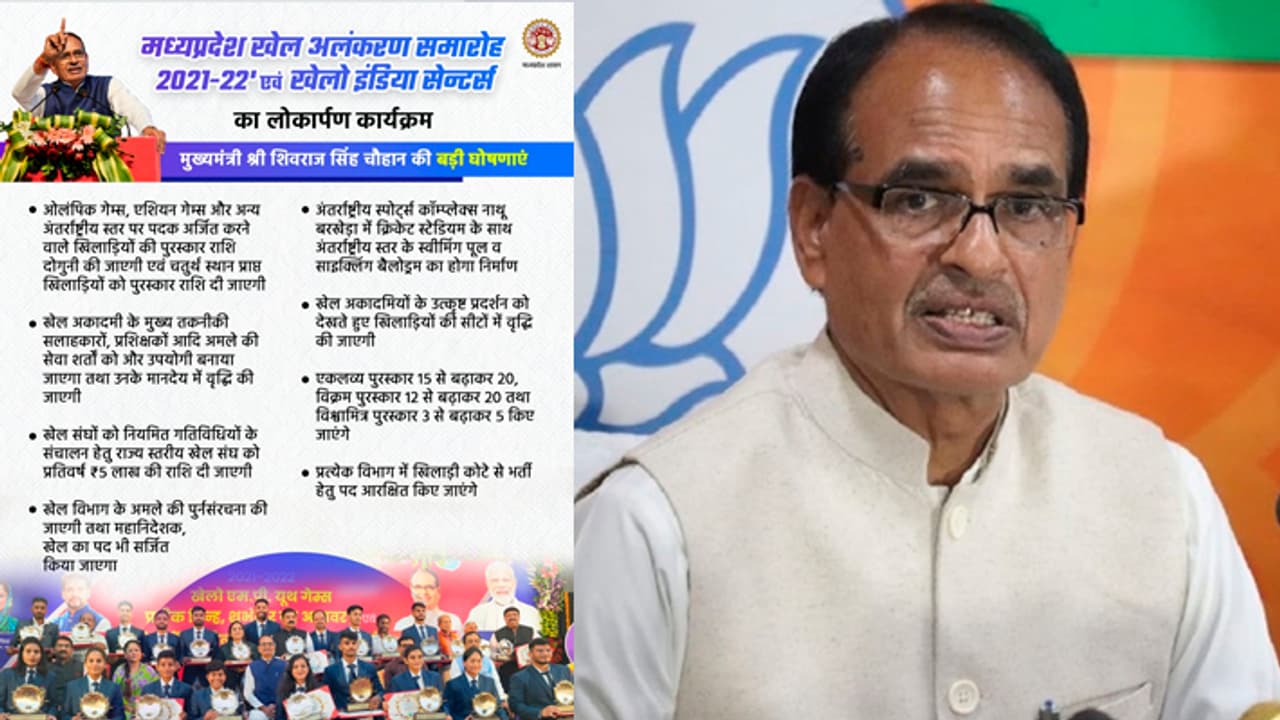 मुख्यमंत्री शिवराज सिंह चौहान ने मध्यप्रदेश खेल अलंकरण समारोह 2021-22' एवं खेलो इंडिया सेन्टर्स के लोकार्पण के साथ प्रदेश के खिलाड़ियों और खेल संघ के लिए कई घोषणाएं कीं।