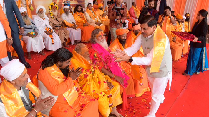 मुख्यमंत्री डॉ. यादव ने संतो का पुष्प वर्षा कर किया अभिवादन