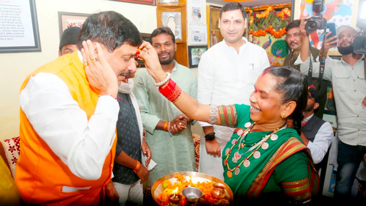 CM मोहन यादव ने पद्मश्री अवार्डी श्रीमती दुर्गाबाई से उनके निवास पर मुलाकात कर कुशलक्षेम पूछी और गोंड चित्रकारी में नवाचारों व युवा कलाकारों के प्रशिक्षण पर चर्चा की। श्रीमती दुर्गाबाई को 2022 में चित्रकला के लिए पद्मश्री से सम्मानित किया गया था।