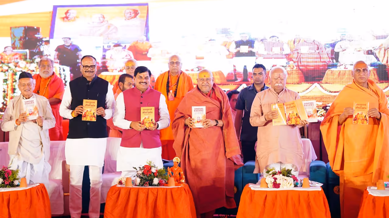 इस कार्यक्रम में Mohan Bhagwat, स्वामी यतींद्र आनंद गिरि, Avdheshanand Giri, Sadhvi Ritambhara और Arif Mohammad Khan सहित कई संत और गणमान्य लोग मौजूद रहे। कार्यक्रम की शुरुआत बच्चों द्वारा हनुमान चालीसा के पाठ से हुई। इस अवसर पर मुख्यमंत्री ने “सनातन धर्म और जीवन दर्शन” नामक पुस्तक का विमोचन भी किया।