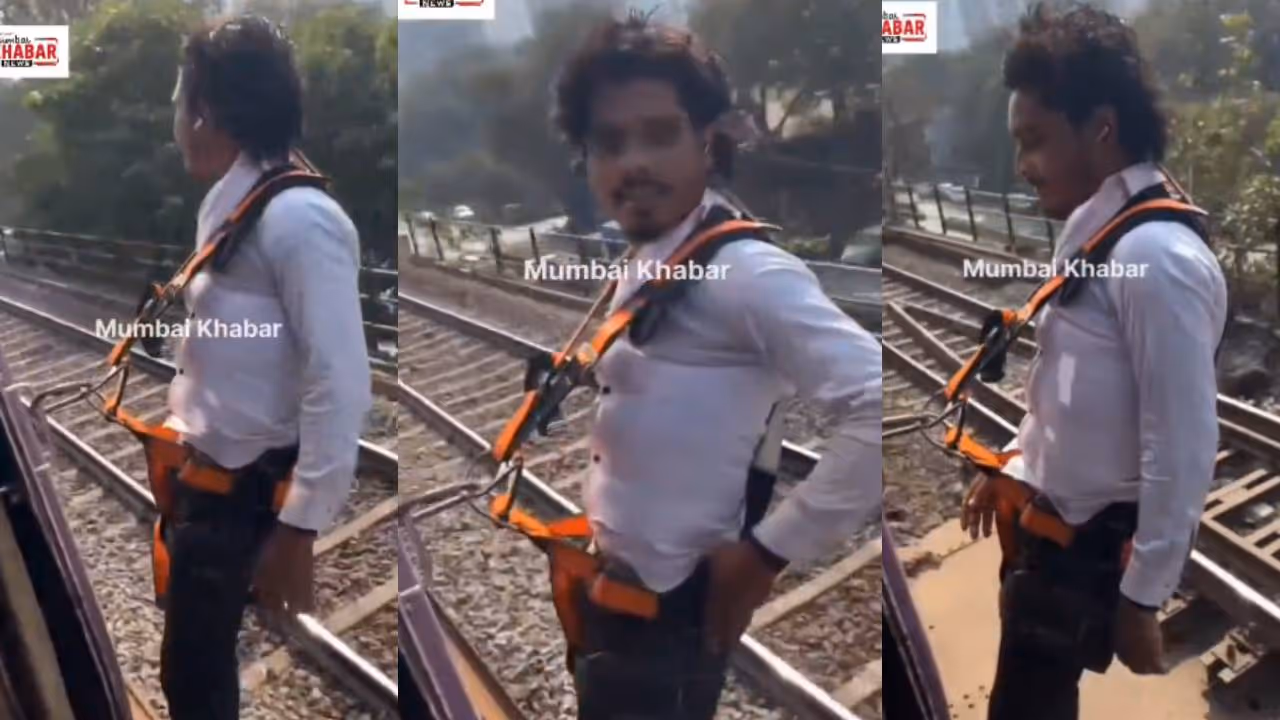 मुंबई लोकल ट्रेन में एक युवक ने वायरल होने के लिए खतरनाक स्टंट किया। वह हार्नेस से बंधकर चलती ट्रेन से बाहर लटका। वीडियो के सोशल मीडिया पर फैलने के बाद RPF ने उसे गिरफ्तार कर लिया है।