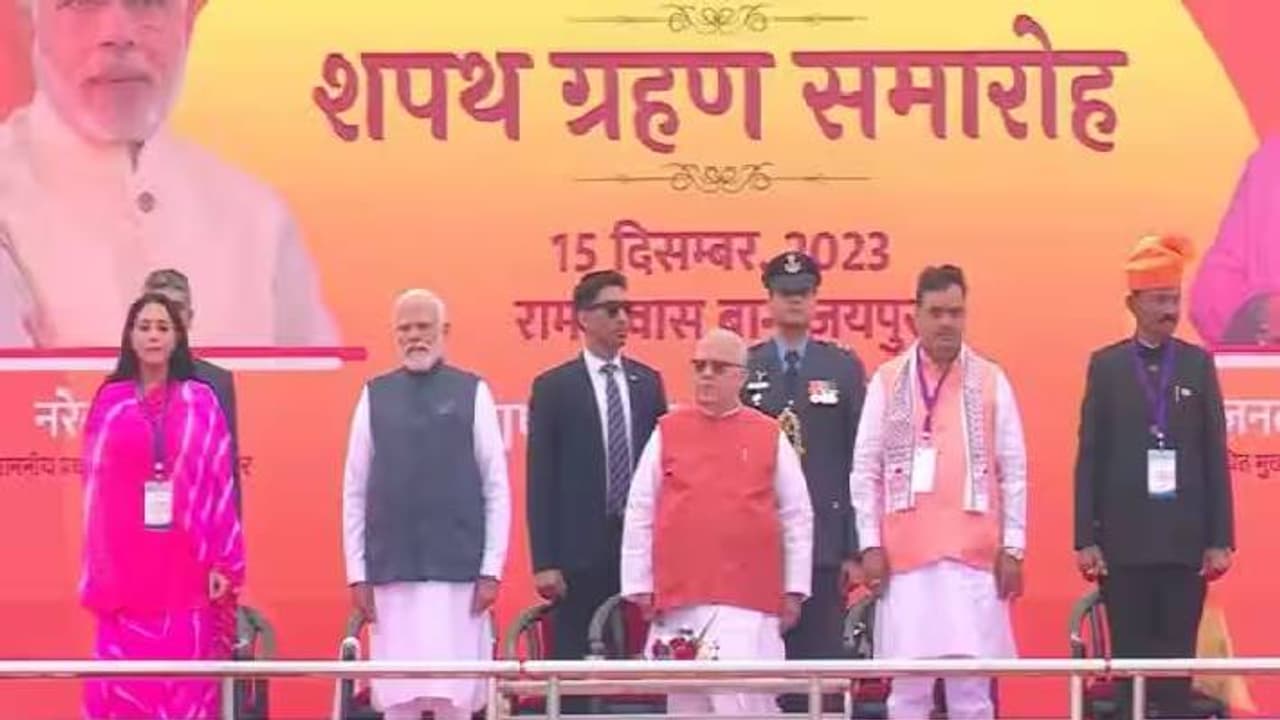 प्रधानमंत्री नरेंद्र मोदी, केंद्रीय गृहमंत्री अमित शाह की मौजदूगी में भजनलाल शर्मा ने सीएम पद की शपथ ली। उनके साथ ही राज्यापाल ने दीया कुमारी और प्रेम चंद बैरवा को डिप्टी सीएम पद की शपथ दिलाई। शपथ से पूर्व राष्ट्रगान का आयोजन हुआ।