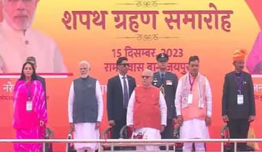 पीएम मोदी की मौजदूगी में राज्यपाल ने भजनलाल शर्मा को सीएम पद की शपथ दिलाई। जिसके बाद दीया कुमारी व प्रेम चंद बैरवा को डिप्टी सीएम पद की शपथ दिलाई गई। शपथ लेने तुरंत बाद भजनलाल शर्मा पीएम से मिले।