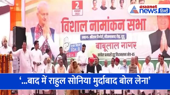 राजस्थान का एक वीडियो जमकर वायरल हो रहा है। इस वीडियो में सीएम अशोक गहलोत मंच से नाराज हो रहे हैं। इससे पहले एक अन्य नेता मंच से कह रहा है कि बाद में सोनिया-राहुल गांधी मुर्दाबाद बोल लेना।