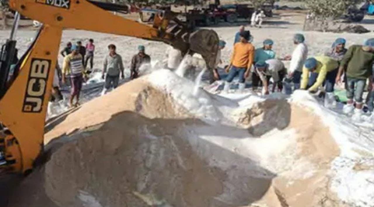 JCB ने देखिए किस तरह से बना डाला 350 कुंटल चूरमा, भेरू बाबा के भव्य आयोजन में पहुंचेंगे 2 लाख लोग