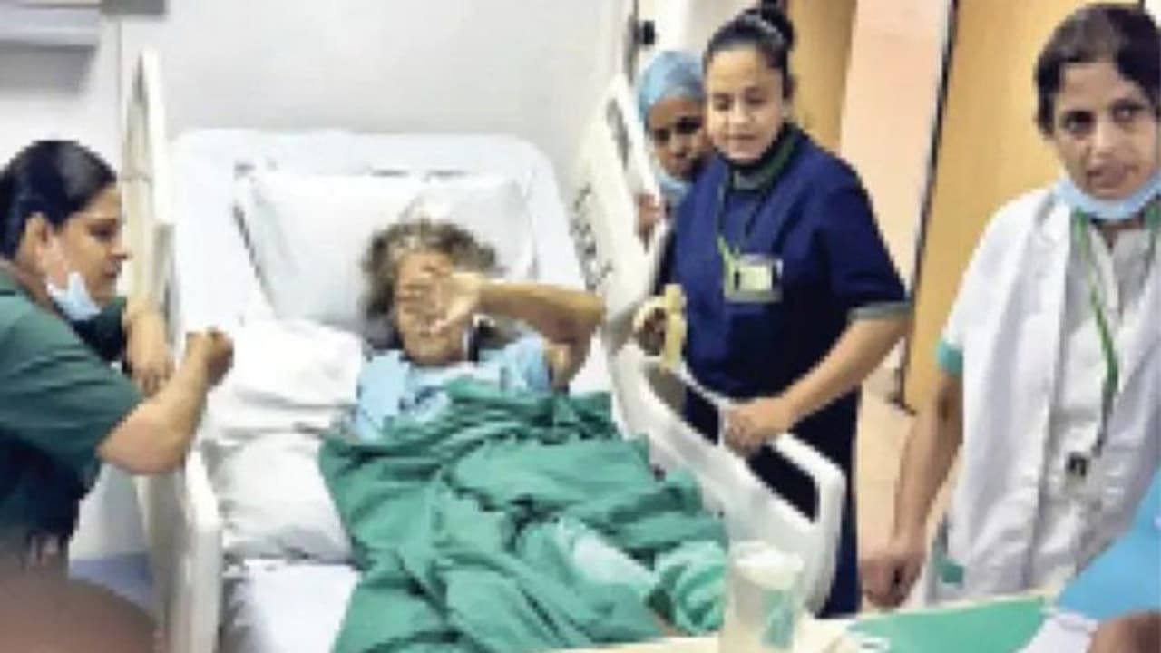 बुजुर्ग महिला की देखभाल कर रहे डॉक्टर
