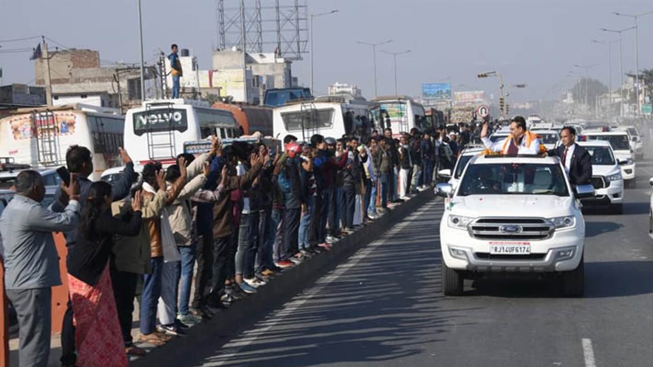 इस बीच आज सवेरे पहली बार जब भी अपने काफिले को लेकर भरतपुर के लिए रवाना हुए तो जयपुर में ट्रांसपोर्ट नगर टनल से होकर उनके वाहन गुजरे । आगरा रोड पर बड़ी संख्या में लोग स्वागत करने के लिए खड़े हो गए। मुख्यमंत्री भजनलाल ने भी लोगों को निराश नहीं किया और अपनी कार के सनरूफ से बाहर निकलकर लोगों का अभिवादन किया । आगरा रोड पर कई जगहों पर बड़ी संख्या में लोगों ने उनका स्वागत किया।