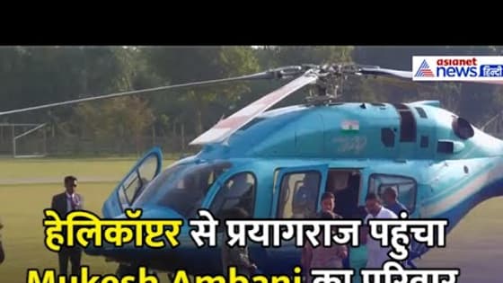 हेलिकॉप्टर से इस अंदाज में प्रयागराज पहुंचा Mukesh Ambani का परिवार-Watch Video