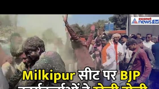 Milkipur सीट पर BJP कार्यकर्ताओं ने खेली भयंकर होली, जमकर उड़ाए रंग-गुलाल