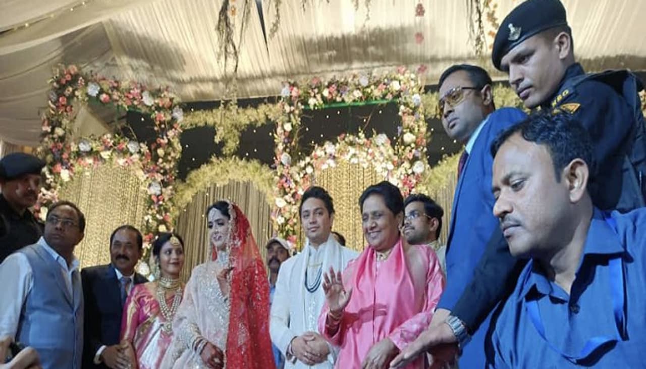 बसपा सुप्रीमो मायावती ने पहुंचकर दिया भतीजे आकाश आनंद और डॉ. प्रज्ञा को आशीर्वाद, देखें शादी की Photos