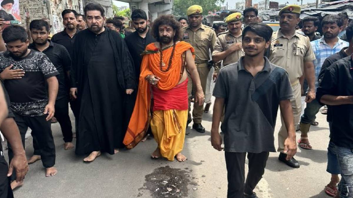 Moharram processions in Lucknow: लखनऊ में मोहर्रम के जुलूस में एक हिंदू धर्मगुरु, स्वामी सारंग, ने चाकुओं से मातम मनाकर सबको चौंका दिया। उन्होंने इमाम हुसैन की शहादत को मानवता की मिसाल बताया और भाईचारे का संदेश दिया।