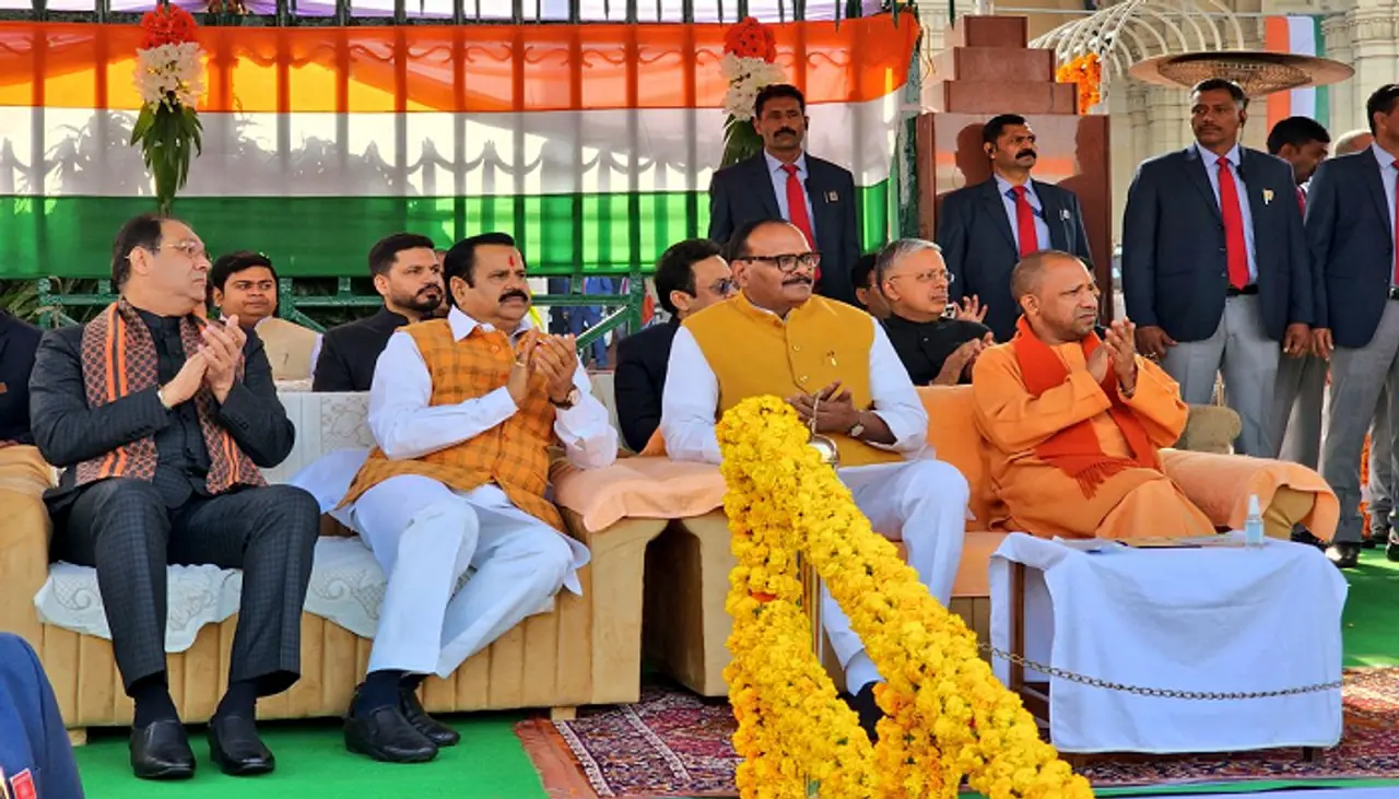 यूपी के मुख्यमंत्री योगी आदित्यनाथ और उप मुख्यमंत्री ब्रजेश पाठक कार्यक्रम के दौरान मंच पर मौजूद रहे। इसी के साथ वहां पर प्रदेश सरकार के कई अन्य मंत्रियों की भी मौजूदगी रही।