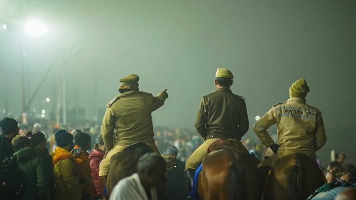 महाकुंभ मेला में सुरक्षा के कड़े इंतजाम हैं। पुलिस के जवान नाव और घोड़ों पर सवार होकर गश्त कर रहे हैं। इस मेला में 40 करोड़ से अधिक लोगों के आने का अनुमान है। यह इंसानों का अब तक का सबसे बड़ा जमावड़ा है।