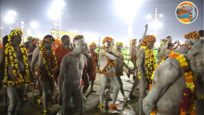निरंजनी अखाड़े के नागा साधुओं ने अपने धार्मिक अनुष्ठान और पूजा के बाद संगम में डुबकी लगाई। गदा लहराते हुए ये साधु अपने ध्वज, त्रिशूल और अन्य पारंपरिक प्रतीकों के साथ स्नान करने पहुंचे। यह दृश्य देखने के लिए श्रद्धालुओं की भीड़ उमड़ी हुई थी, जहां विदेशी लोग भी नागा साधुओं की तस्वीरें ले रहे थे.