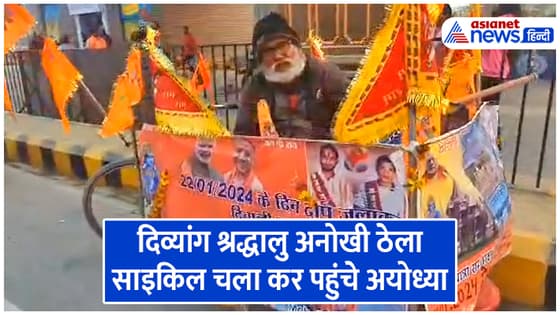 प्रतापगढ़ से ट्राइसाइकल चलाकर अयोध्या पहुंचे दिव्यांग शख्स राम लला की प्राण प्रतिष्ठा से बेहद उत्साहित है। पीएम मोदी और सीएम योगी आदित्यनाथ के कटआउट को साइकल पर टांगे इस शख्स ने राम के अलावा मोदी - योगी में भी अपनी श्रद्धा जताई है।
