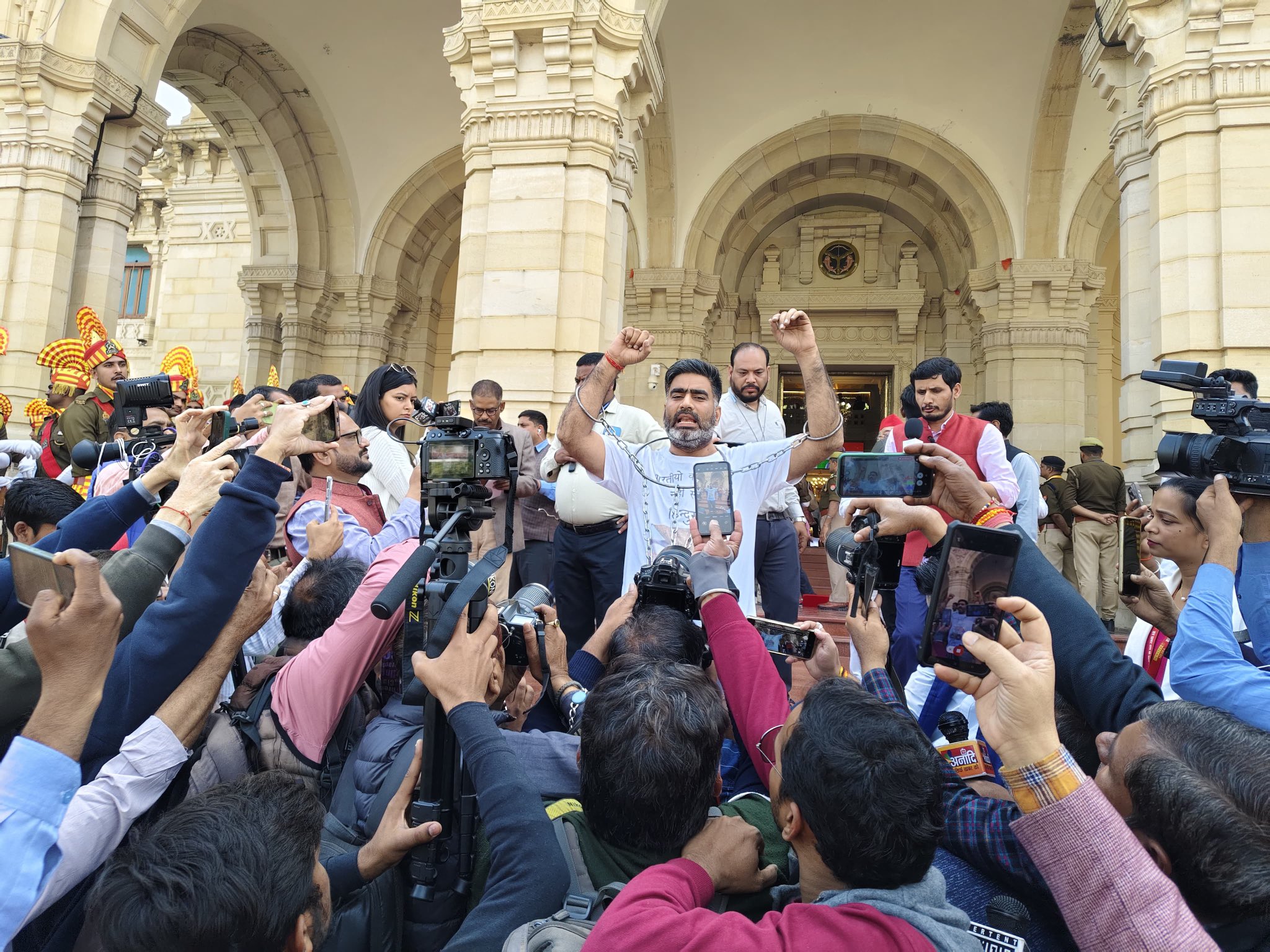 समाजवादी पार्टी के विधायक अतुल प्रधान हाथों और गले में बेड़िया पहनकर विधानसभा पहुंचे। वह अमेरिका में ट्रंप प्रशासन द्वारा अवैध रूप से रह रहे भारतीयों को हथकड़ी लगातर वापस भेजने के मामले को उठा रहे थे। वह हाथों और गले में बेड़ियां पहनकर उत्तर प्रदेश विधानसभा (UP Assembly) पहुंचे, जिससे वह मीडिया और राजनीतिक गलियारों में चर्चा का विषय बन गए। उन्होंने हथकड़ी लगाए जाने का विरोध करते हुए कहा: हमारी संस्कृति नर ही नायारण है को मानने वाली हैं और हमारे देश के नागरिक के साथ अमेरिका का व्यवहार दास प्रथा की तरह हैं, यह अमानवीय है और हम इसको सहन नहीं करेंगे। उन्होंने एक्स हैंडल पर ट्वीट किया: हमारी सरकार से मांग हैं की देश उन नागरिको को जिनका अपमान अमेरिका ने किया है सारी संपत्ति वापस दिलाये। आज इस झूठी सरकार के कारण सबको आघात पहुंचा है। देश में किसानो दशा दयनीय हैं। बेरोजगारी चरम पर है। ये सरकार सिर्फ़ झूठ बोलने का काम करती है।