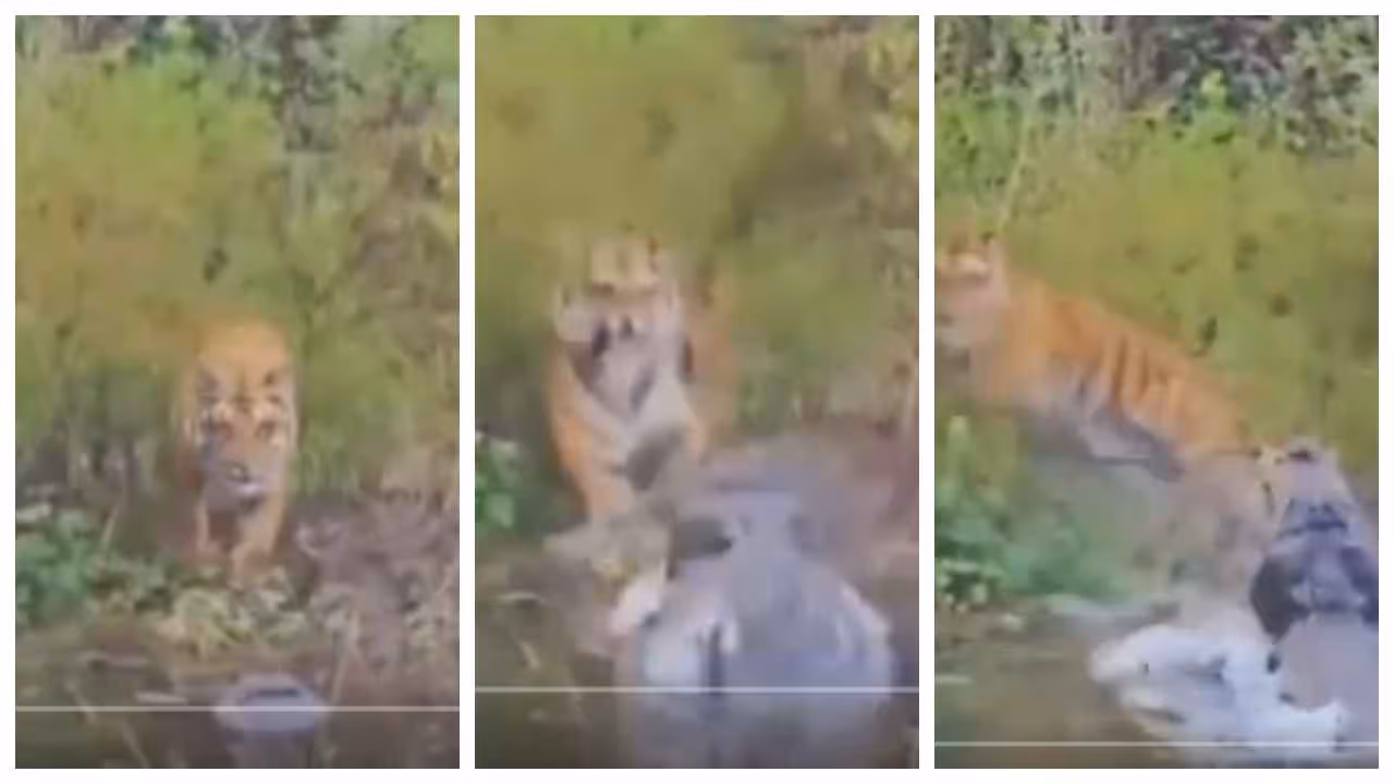 उन्होंने जो वीडियो शेयर किया, उसमें एक बाघ जिम कॉर्बेट टाइगर रिज़र्व के हिस्से, उत्तर प्रदेश की रामगंगा नदी के पास एक मगरमच्छ के हमले से बाल-बाल बचता है। बाघ काफी बड़ा है। उसका शरीर देखकर लगता है कि वह कई लड़ाइयों का विजेता है। लेकिन पानी पीने के लिए नदी में उतरने की उसकी कोशिश आखिरी पल में नाकाम हो गई। पानी से एक विशाल मगरमच्छ उसकी गर्दन की ओर उछला। हैरान बाघ वापस जंगल की ओर कूद गया। वीडियो में यह भी दिखता है कि वह छिपकर यह देखने की कोशिश कर रहा है कि वहां क्या हुआ। कई लोगों ने वीडियो पर कमेंट किया। कुछ ने लिखा कि मगरमच्छ ने बाघ को जीवन के अस्तित्व के बारे में चेतावनी दी।