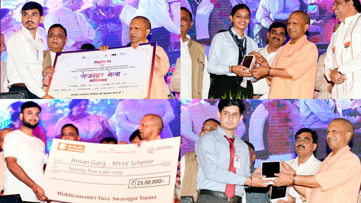 सीएम योगी ने कहा कि प्रधानमंत्री मोदी के नेतृत्व भारत दुनिया की तीसरे नंबर की अर्थव्यवस्था बनने की ओर अग्रसर है। उन्होंने कहा कि उत्तर प्रदेश में डबल इंजन सरकार साढ़े सात साल में साढ़े छह लाख से ज्यादा युवाओं को सरकारी नौकरी दे चुकी है। उत्तर प्रदेश के इतिहास में पहली बार 40 लाख करोड़ रुपए से ज्यादा के निवेश प्रस्ताव प्राप्त हुए हैं। इससे लगभग प्रदेश के डेढ़ करोड़ युवाओं को नौकरी मिलेगी। उन्होंने कहा कि मुख्यमंत्री युवा उद्यमी योजना के तहत डबल इंजन सरकार अगले कुछ वर्षों के अंदर 10 लाख युवाओं को पहले पांच लाख और दूसरे चरण में 10 लाख रुपए का ब्याजमुक्त ऋण उपलब्ध कराने जा रही है।