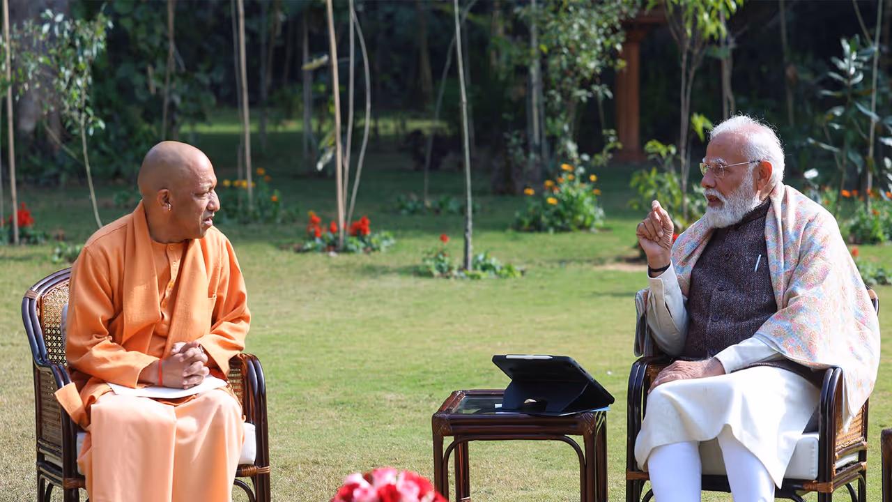 नई दिल्ली: उत्तर प्रदेश के मुख्यमंत्री योगी आदित्यनाथ ने सोमवार को नई दिल्ली में प्रधानमंत्री नरेंद्र मोदी से मुलाकात की। X पर एक पोस्ट में, PMO के आधिकारिक हैंडल ने तस्वीरें शेयर कीं और लिखा, "उत्तर प्रदेश के मुख्यमंत्री, श्री @myogiadityanath ने प्रधानमंत्री @narendramodi से मुलाकात की। @CMOfficeUP।"