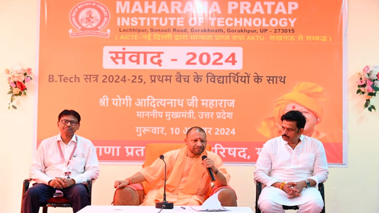 CM योगी आदित्यनाथ ने गोरखपुर में महाराणा प्रताप इंस्टिट्यूट ऑफ टेक्नोलॉजी के छात्रों से संवाद किया। उन्होंने कहा कि ज्ञान, विज्ञान और तकनीकी भारत के डीएनए में है और युवाओं को संघर्षों से अपनी राह बनानी चाहिए।