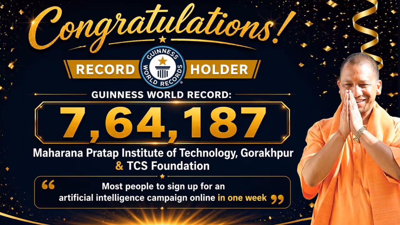 गोरखपुर में ‘AI For All’ अवेयरनेस प्रोग्राम ने एक सप्ताह में 7.64 लाख ऑनलाइन पंजीकरण के साथ गिनीज वर्ल्ड रिकॉर्ड बनाया। यह पहल एमपीआईटी और टीसीएस के सहयोग से शुरू हुई, जिसमें कई विश्वविद्यालयों ने भाग लिया।