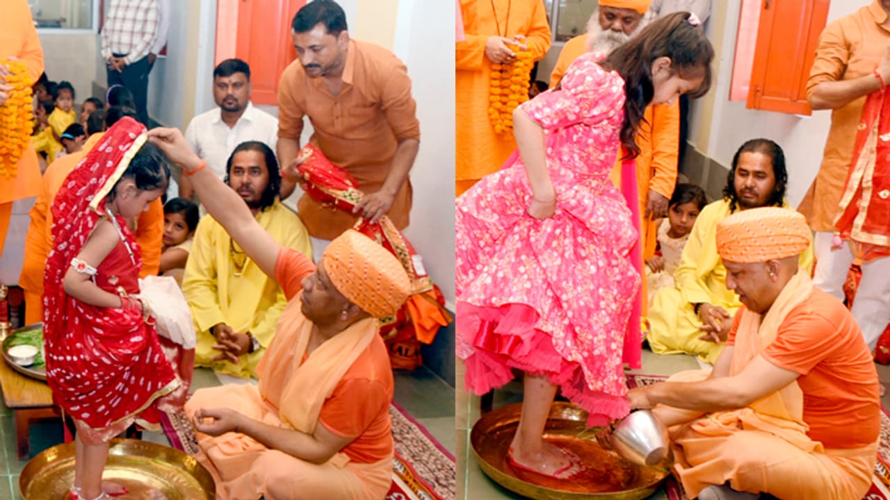 मुख्यमंत्री योगी आदित्यनाथ ने नवरात्रि के नवमी तिथि पर गोरखनाथ मंदिर में कन्या पूजन किया। उन्होंने नौ कन्याओं के पांव पखारे, पूजन किया और भोजन कराया।