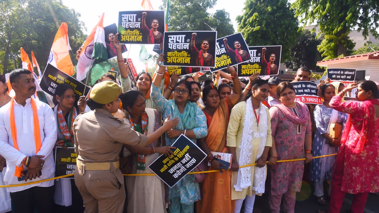 उपमुख्यमंत्री बृजेश पाठक ने कहा कि आज प्रदेश की महिला शक्ति सड़कों पर उतरकर अपना विरोध दर्ज करा रही है। उन्होंने आरोप लगाया कि समाजवादी पार्टी और कांग्रेस की संकीर्ण सोच के कारण नारी शक्ति वंदन अधिनियम को संसद में रोका गया। उन्होंने कहा कि महिलाएं अब इन पार्टियों के खिलाफ खुलकर विरोध कर रही हैं और आने वाले चुनाव में उन्हें इसका परिणाम भुगतना पड़ेगा। उन्होंने यह भी कहा कि जब-जब समाजवादी पार्टी की सरकार रही है, तब कानून व्यवस्था को लेकर सवाल उठे हैं और महिलाओं की सुरक्षा प्रभावित हुई है। ऐसे में अब समय आ गया है कि महिलाएं एकजुट होकर अपनी ताकत दिखाएं।