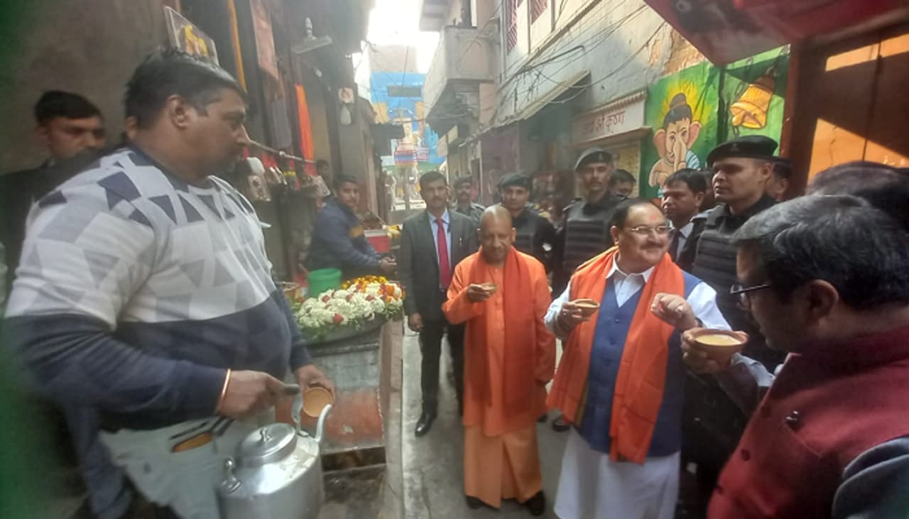 श्री काशी विश्वनाथ के दर्शन करने पहुंचे जेपी नड्डा और सीएम योगी, पूजन के बाद ली चाय की चुस्की, देखें Photos
