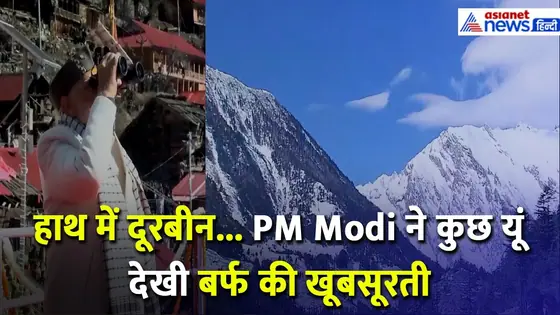 Modi in Uttarkashi: हाथ में दूरबीन लेकर PM Modi ने कुछ यूं देखी बर्फ की खूबसूरती