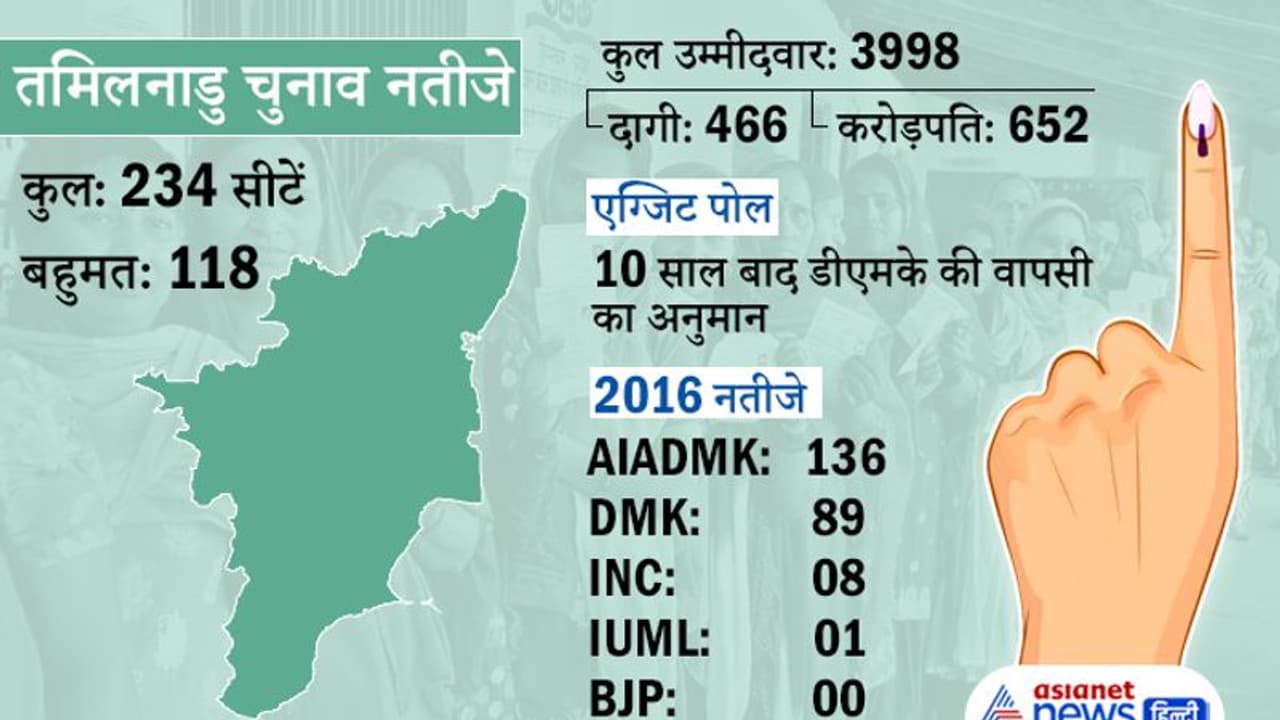 तमिलनाडु में अभी एआईएडीएमके की सरकार थी। लेकिन जयललिता की पार्टी सत्ता बचाने में नाकाम साबित हुई। इस बार भाजपा ने एआईएडीएमके के साथ चुनाव लड़ा था। उधर, कांग्रेस और डीएमके ने 2019 चुनाव का अपना गठबंधन आगे बढ़ाया। 2016 में दोनों पार्टियों ने अलग अलग चुनाव लड़ा था। डीएमके के साथ इस बार चुनाव में सीपीआई, सीपीआई एम, विदुतलाई चिरुतागल कच्छी, आईयूएमएल और कोंगुनाडु मुन्नेत्र कड़गम भी थीं। जबकि कमल हासन की पार्टी मक्कल निधि मैय्यम भी चुनाव मैदान में थी।