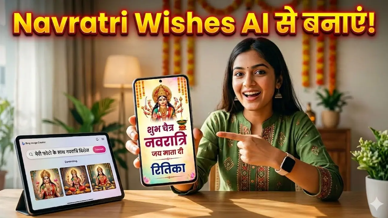 Create Navratri Photos with AI: वही पुराने और घिसे-पिटे किसी के भेजे नवरात्रि मैसेज अब बीते जमाने की बात हो गए हैं। इस बार चैत्र नवरात्रि 2026 पर कुछ हटके ट्राई करें। जानिए कैसे AI की हेल्प से आप सबसे यूनिक विशेज तैयार कर सकते हैं, जो सोशल मीडिया पर छा जाएं।