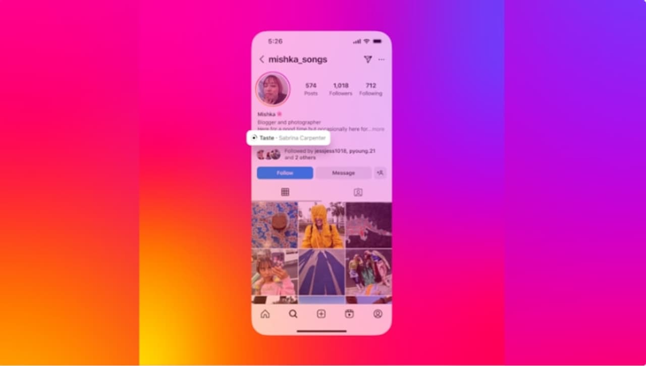 अब इंस्टाग्राम पर यूजर प्रोफाइल के साथ संगीत भी जोड़ सकते हैं। बायो वाले हिस्से में इस तरह ऐड करने का नया फीचर दिखाई दे रहा है। इस तरह जोड़े गए गाने और म्यूजिक को आप जब चाहें डिलीट कर सकते हैं और नए गाने ऐड कर सकते हैं। 'माईस्पेस' ऐप में यह फीचर सालों से मौजूद है। हालाँकि, माईस्पेस की तरह इंस्टा पर यह ऑटोप्ले नहीं होगा। इसके बजाय, इंस्टा यूजर्स को प्रोफाइल पर क्लिक करके गाना सुनना और पोस्ट करना होगा.