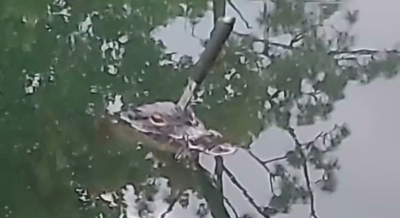 फ्लोरिडा (अमरीका)। अमरीका के फ्लोरिडा में एक तालाब में अजीबो-गरीब स्थिति में मगरमच्छ तैरता दिखा। इस मगरमच्छ के सिर में बड़ा सा चाकू घोंपा हुआ है। फ्लोरिडा मछछी और वन्यजीव संरक्षण आयोग ने सोमवार को इस मगरमच्छ की तस्वीरें सोशल मीडिया पर जारी कीं। टीम को यह मगरमच्छ फ्लोरिडा के डेल्टोना स्थित प्रोविडेंस बुलेवार्ड तालाब में दिखाई दिया था।