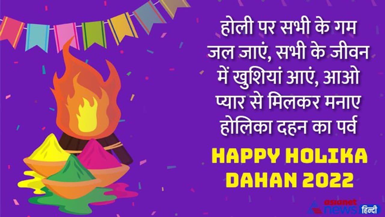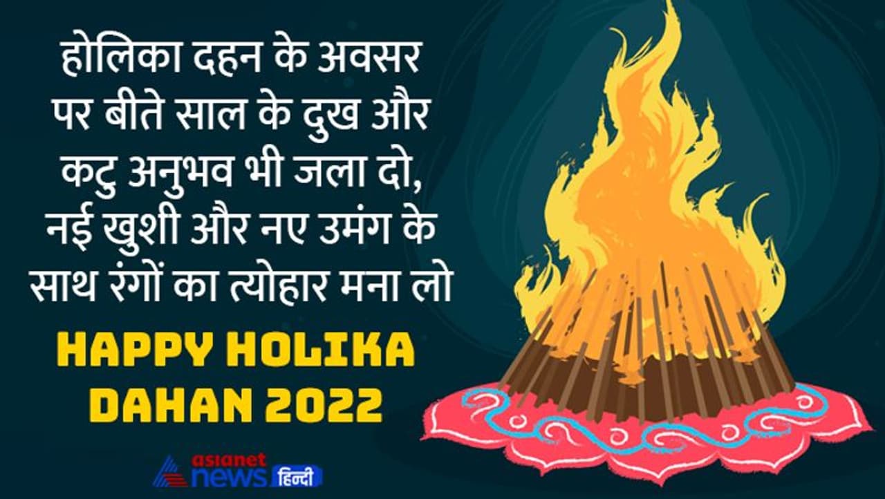 होलिका दहन के अवसर पर बीते साल के दुख और कटु अनुभव भी जला दो, नई खुशी और नए उमंग के साथ रंगों का त्योहार मना लो, होलिका दहन की शुभकामनाएं Happy Holika Dahan 2022