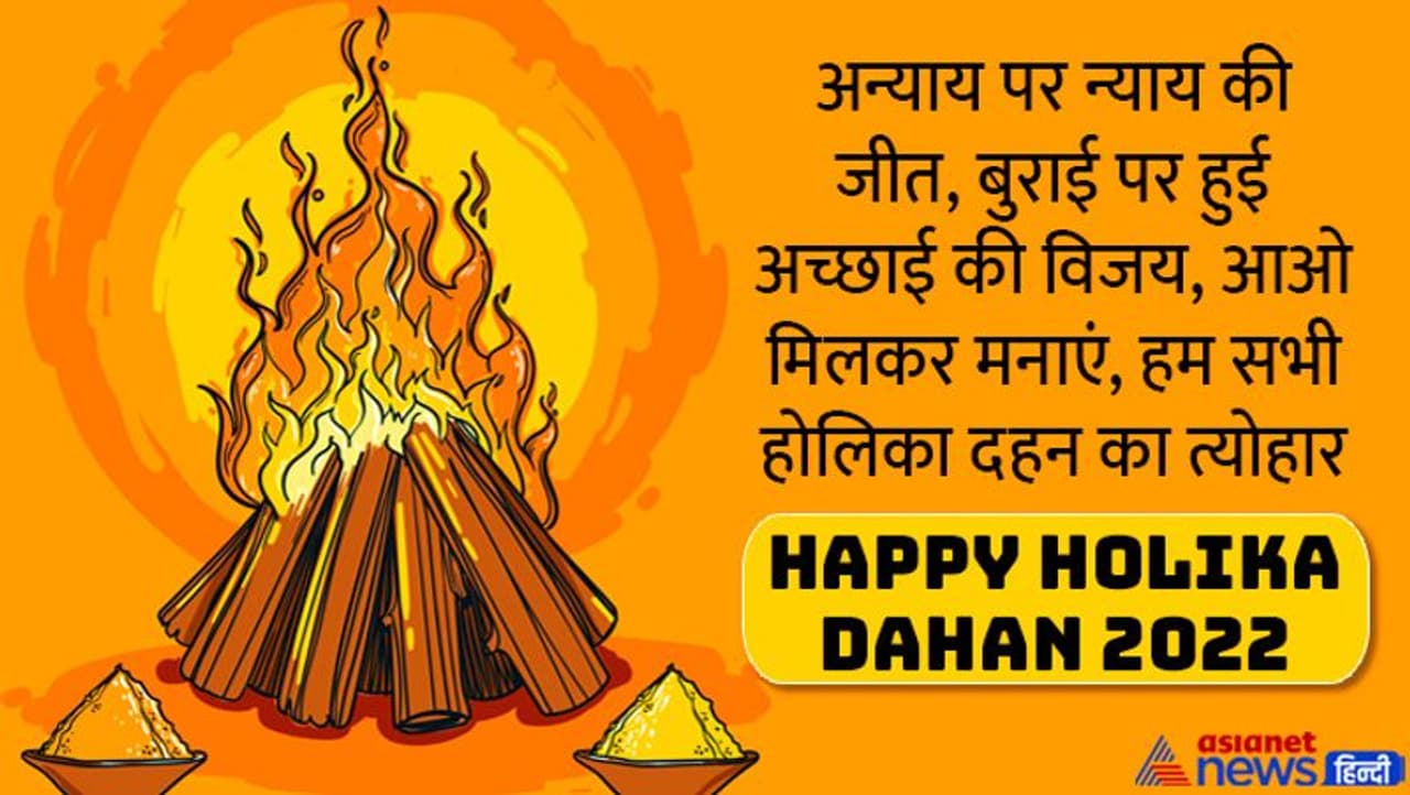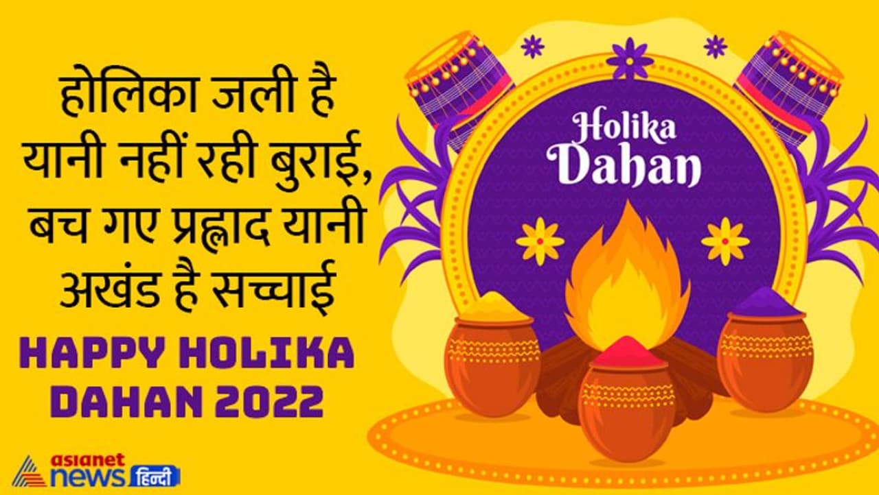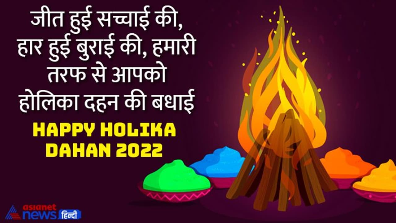 जीत हुई सच्चाई की, हार हुई बुराई की, हमारी तरफ से आपको होलिका दहन की बधाई, हैप्पी होलिका दहन। Happy Holika Dahan 2022