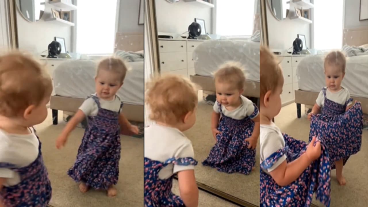 एक क्यूट बेबी की क्लिप जमकर वायरल हो रही है, इसमें वह न्यू ड्रेस पहनकर खुद को मिरर में देख रही है । उसका लवली अंदाज और मुस्कुराहट किसी को भीअपना दीवाना बना सकती है। वीडियो को 1.2 मिलियन व्यूज और हजारों लाइक्स मिल चुके हैं।