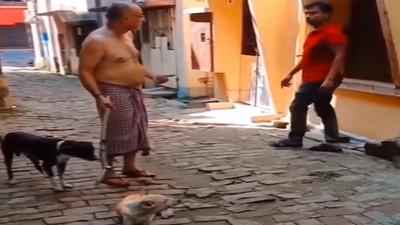 वीडियो वायरल हो रहा है जिसमें एक युवक बुजुर्ग को कुत्तों को डराने के लिए डांट रहा है। इसके बाद कुत्ते उस युवक पर ही टूट पड़ते हैं। ये घटना दिखाती है कि कैसे कुत्ते अपने परिचित लोगों के प्रति वफादार होते हैं। बाहरी हस्तक्षेप बर्दाश्त नहीं करते हैं।