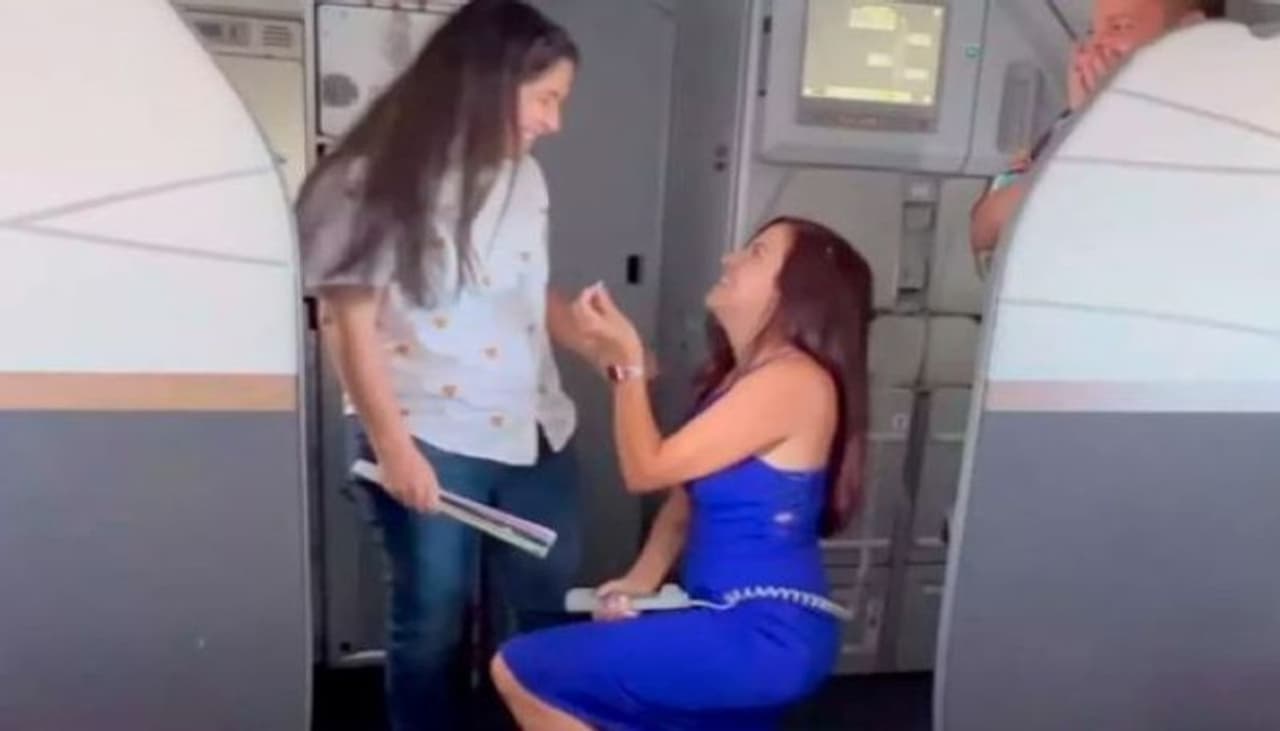 इस एयर होस्टेस का नाम वेरोनिका रोजस है, जबकि महिला पायलट जो कि उसकी गर्लफ्रेंड भी है, का नाम एलेजेंद्रा मोनकायो है। दोनों का यह प्रपोज वीडिया तब बनाया गया, जब यह विमान करीब 35 हजार फुट की ऊंचाई पर था। यह विमान सैन फ्रांसिस्को से लॉस एजेंलिस जा रहा था। बताया जा रहा है कि एलेजेंद्रा और वेरोनिका की मुलाकाात लगभग दो साल पहले विमान में ही हुई थी। दोनों एक ही कंपनी में काम करती थीं, इसलिए उड़ान के दौरान अक्सर मुलाकात होती रही।