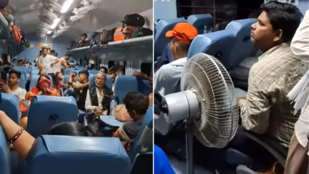 ट्रेन में एक यात्री अपने टेबल फैन के साथ सफर कर रहा है! वीडियो वायरल, लोग बोले- ‘ये है इंडियन जुगाड़!’