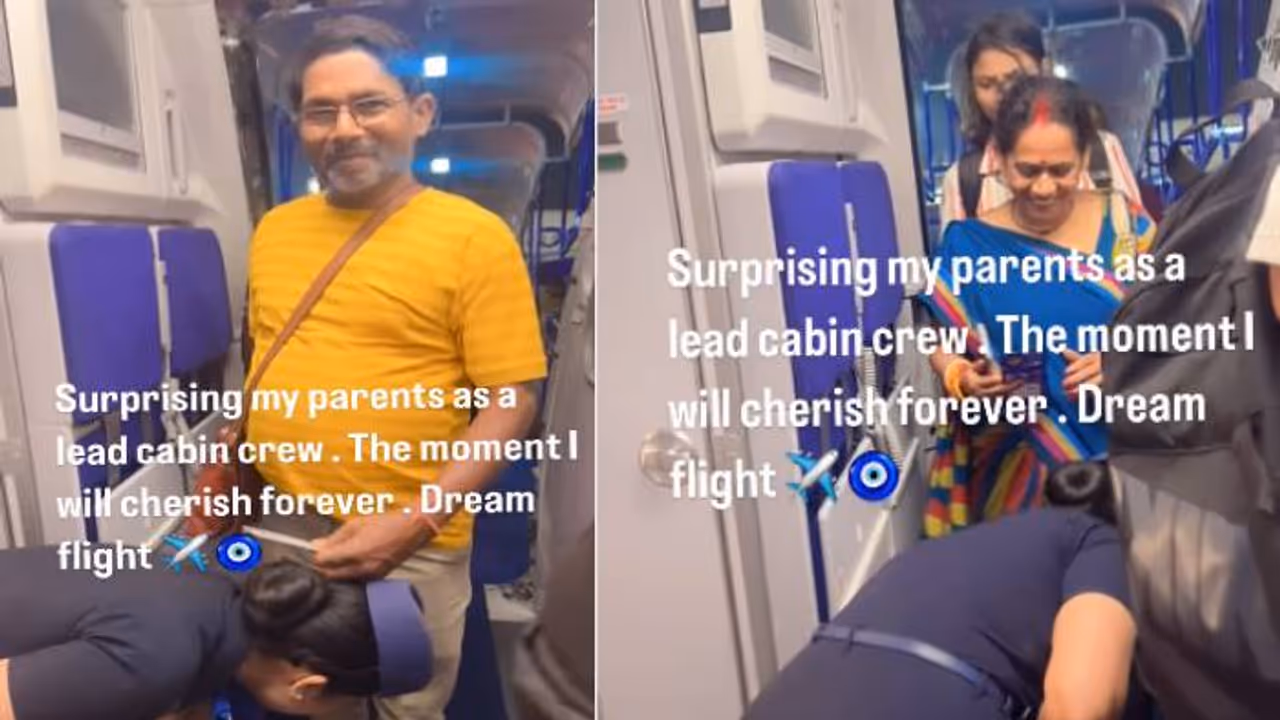 इंडिगो की फ्लाइट अटेंडेंट परमिता रॉय ने अपने माता-पिता को अपनी फ्लाइट में सरप्राइज दिया। इस खास पल को उन्होंने 'ड्रीम फ्लाइट' कहा और वीडियो सोशल मीडिया पर शेयर किया।