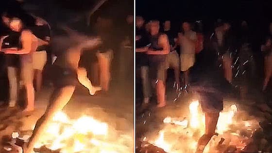 नशे में आग पर कूदी युवती, मस्ती करना पड़ गया भारी जब धधकती आग में फिसला पैर, देखें वीडियो