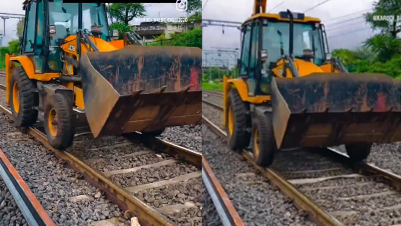 बिना किसी मॉडिफिकेशन के रेल पटरियों पर दौड़ाई जेसीबी