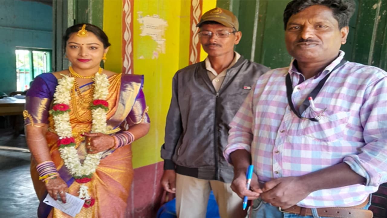 कर्नाटक चुनाव 2023 में चिक्कमंगलुरु जिले के मकोनाहल्ली में एक मतदान केंद्र आकर्षण का केंद्र रहा रहा यहां एक दुल्हन मंडप से सीधे वोट डालने पहुंची।