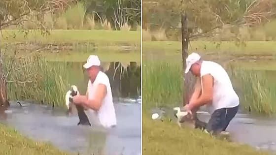सोशल मीडिया पर ये वीडियो सामने आया है जिसमें एक शख्स अपने डॉग को मगरमच्छ से बचाने के लिए तालाब में कूद जाता है। वह अपनी जान की परवाह किए बगैर मगरमच्छ के जबड़े से खींचकर अपने डॉग को बचा लेता है।
