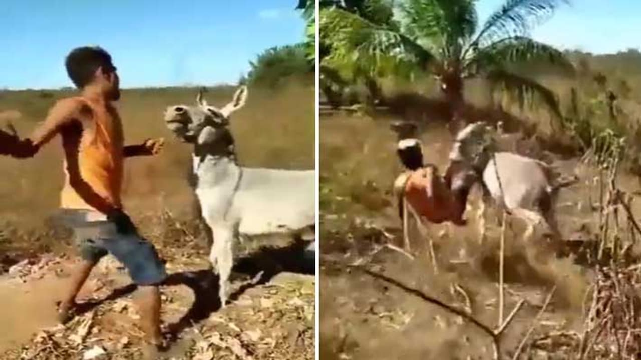 वायरल डेस्क. आपने ऐसे कई लोगों को देखा होगा जो बेजुबान पशुओं को परेशान किया करते हैं। ऐसे लोगों को किसी न किसी रूप में दंड मिल ही जाता है। पर सोशल मीडिया पर ऐसा वीडियो वायरल हो रहा है, जिसमें गधे को परेशान करने वाले युवक को गधे जमकर सबक सिखाया। जिसे गधे को अक्सर लोग सीधा-साधा समझते हैं उसने इस युवक को ऐसा सबक सिखाया कि अब वह जिंदगी में किसी भी पशु को पेरशान नहीं करेगा।