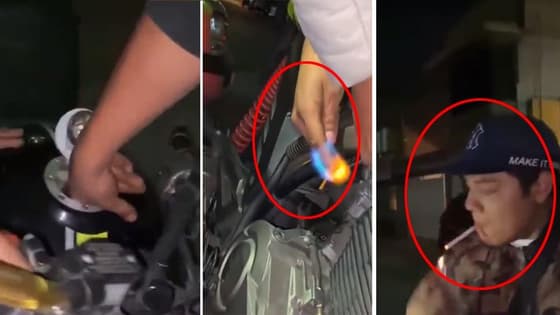 इस वीडियो में आप देखेंगे कि कैसे एक शख्स सिगरेट पीने के लिए पहले अपनी बाइक की टंकी में उंगली डालकर उसे पेट्रोल से गीला करता है। इसके बाद बाइक का स्पार्क प्लग निकालकर अपनी उंगली में आग लगा लेता है। देखें वीडियो..