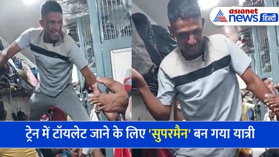 ट्रेन में टॉयलेट जाने के लिए 'सुपरमैन' बन गया यात्री, वायरल वीडियो देख लोगों ने रेलवे की व्यवस्थाओं पर उठाए सवाल