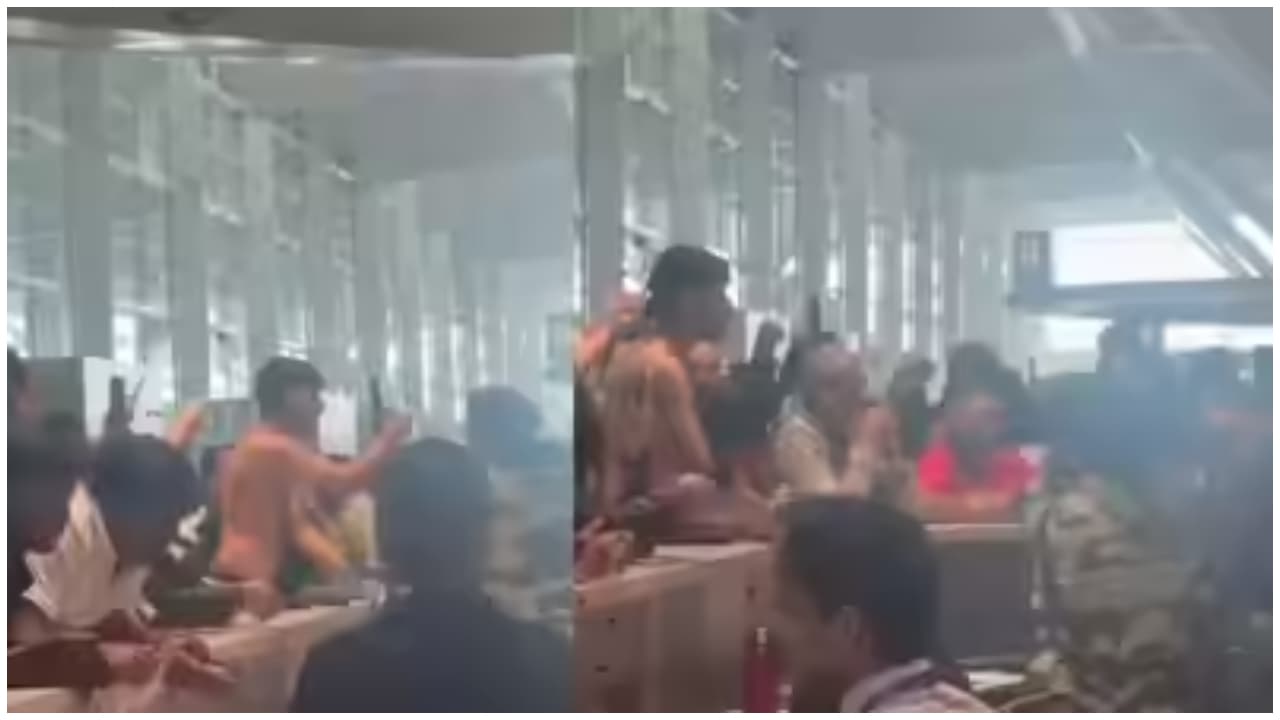 IndiGo Flight Cancellation News (नई दिल्ली): इंडिगो फ्लाइट्स के देशव्यापी संकट के बीच, दिल्ली एयरपोर्ट के टिकट काउंटर पर एक यात्री का वीडियो सामने आया है, जिसमें वह विरोध में अपने कपड़े उतारने की धमकी दे रहा है। बहुत गुस्से में दिख रहे यात्री ने अपनी शर्ट उतारकर फेंक दी और अधिकारियों से बार-बार कहता रहा, 'मैं अपने सारे कपड़े उतार दूंगा', जैसा कि वीडियो में साफ दिख रहा है। देश के सबसे बड़े हवाई संकट की वजह बने इंडिगो की इस गड़बड़ी पर चौतरफा विरोध हो रहा है। यह घटना उस दिन हुई जब हजारों यात्री फंसे हुए थे। इंडिगो ने दिल्ली एयरपोर्ट से आधी रात तक उड़ान भरने वाली सभी घरेलू फ्लाइट्स को रद्द कर दिया था।