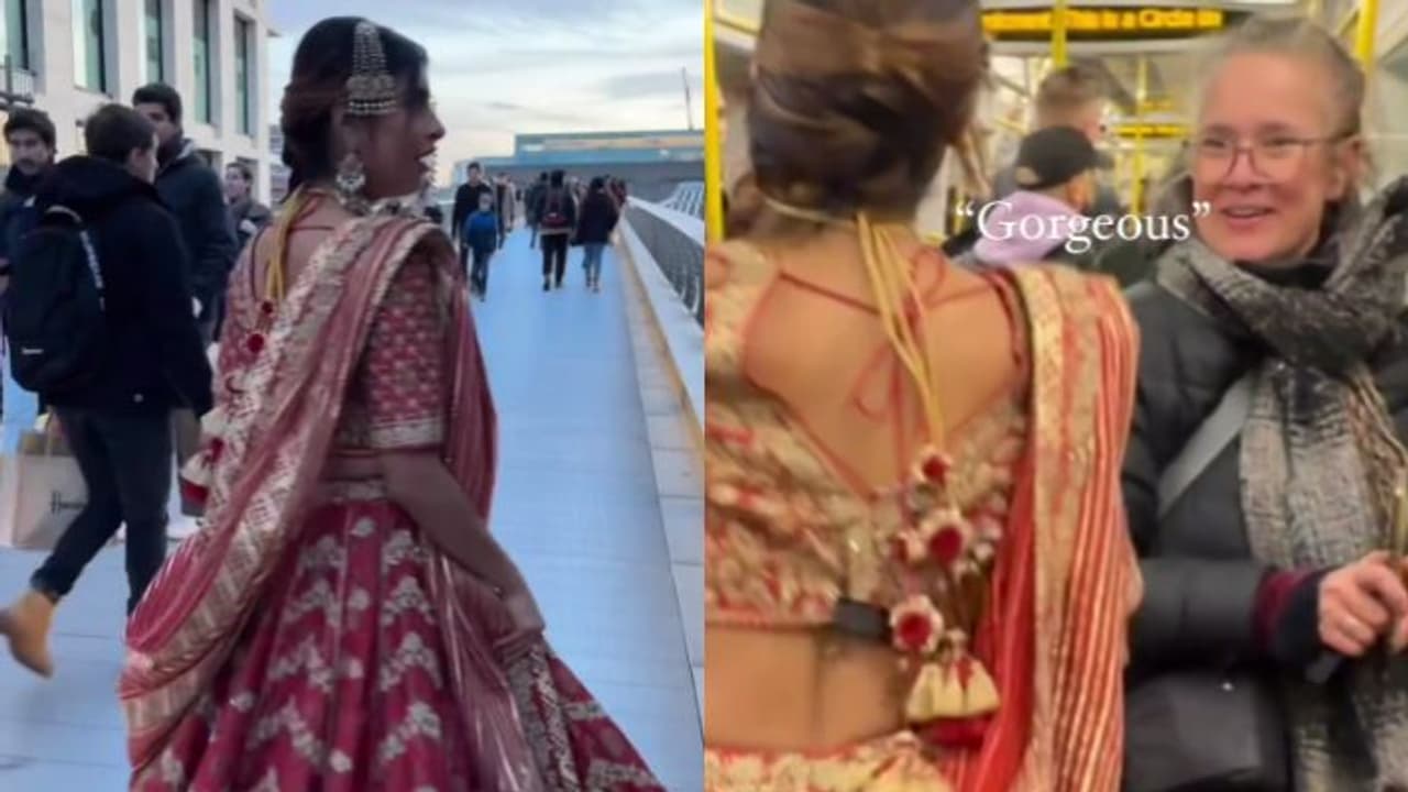 इस रील में मॉडल ने आभूषणों के साथ लाल कढ़ाई वाले लहंगे में दुल्हन के लिबास में दिख रही है। उन्होंने भारी गहने भी पहने हैं। इसके बाद वह मेट्रो में चढ़ जाती है, जहां पर उन्हें लोग देखने लगते हैं। उनके लिबाज को देख लोग चौंक जाते है। एक महिला उन्हें कॉम्प्लिमेंट देते हुए कहती है- गॉरजियस। सभी की नजरें मॉडल पर टिकी रहती हैं। इसके बाद वह सड़कों पर टहलती हुई नजर आती है। यहां भी मेट्रो की तरह माहौल होता है।